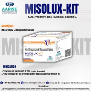 Misolux-Kit by Aarise Pharmaceuticals is a trusted combination of Mifepristone and Misoprostol designed for effective and safe medical termination of early pregnancy under medical supervision. Manufactured with high-quality standards, Misolux-Kit ensures reliable results, quick action, and minimal discomfort when used as prescribed. Backed by Aarise Pharmaceuticals’ commitment to quality and patient care, it offers a dependable solution for women’s reproductive healthcare needs.